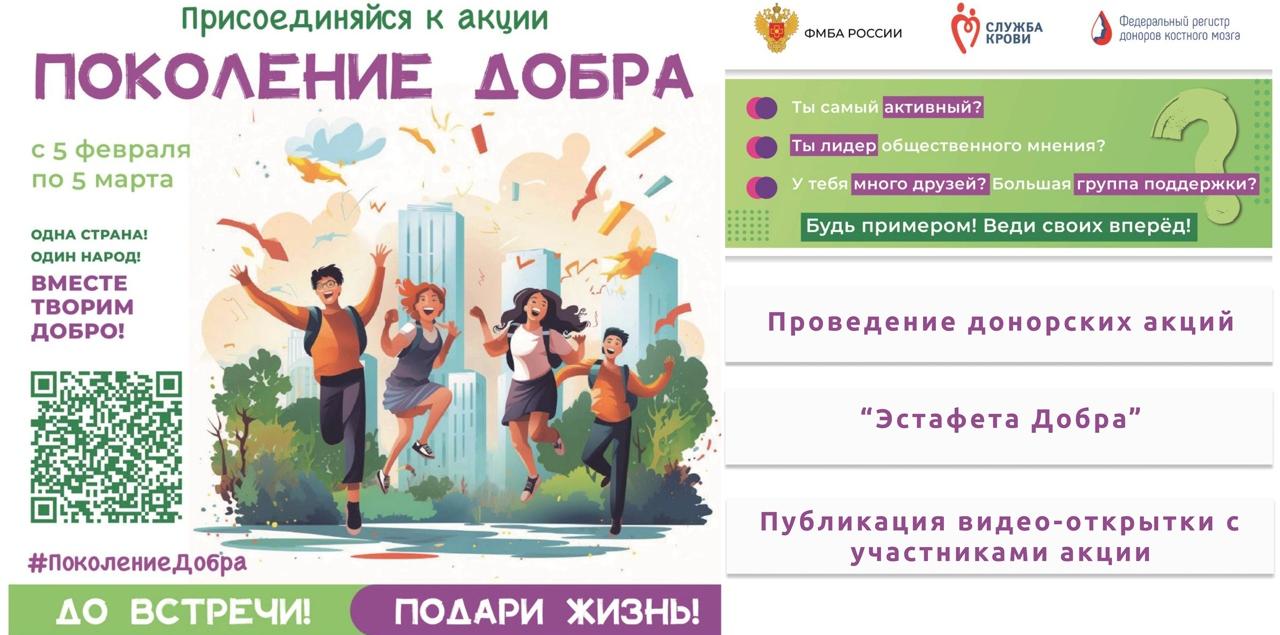 5 февраля стартует Всероссийская акция "Поколение Добра", инициируемая ФМБА России.