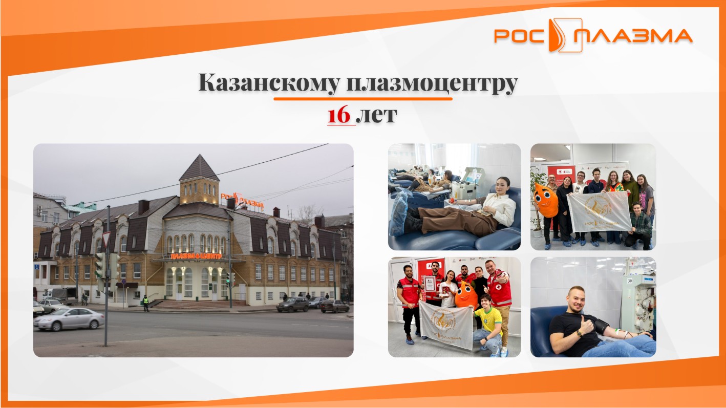 Казанский филиал ФГБУ РМНПЦ «Росплазма» ФМБА России основан 14 января 2009 года, сегодня ему исполняется 16 лет.