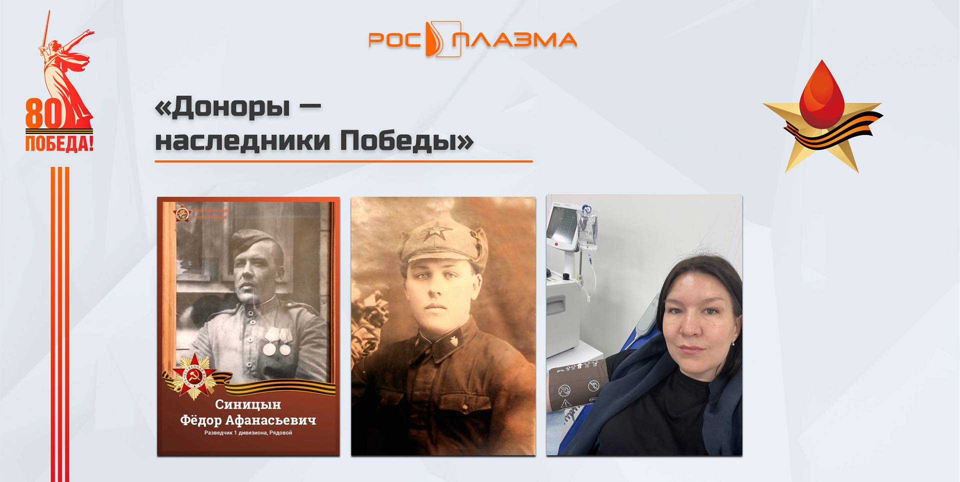 В честь 80-летия Победы в Великой Отечественной войне и объявленного 2025 года как Года защитника Отечества мы продолжаем рассказывать истории наших доноров о своих родственниках – участниках Великой Отечественной войны.